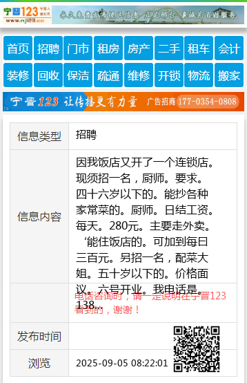 要求。四十六岁以下的。能抄各种家常菜的。厨师。