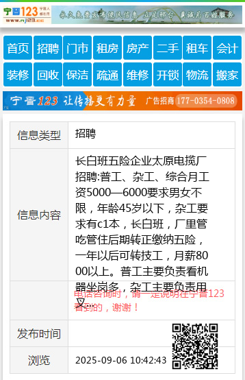 长白班五险企业太原电揽厂招聘:普工、杂工、综合月工资5000—6000