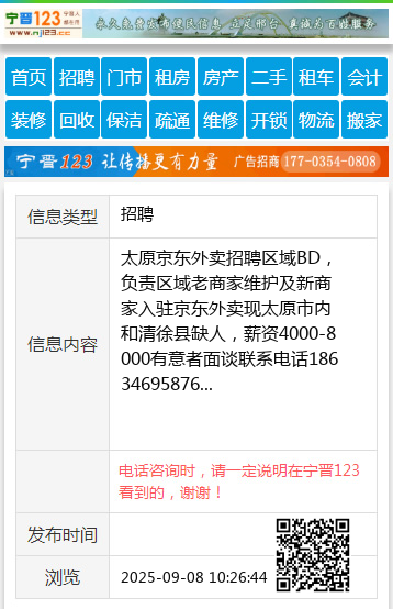 | 防骗提醒: | 太原生活网(www.sxtaiyuan.net)提醒您:手工活、网络兼职、刷单,都是骗子!凡以各种名义收取费用的都是骗子!找工作是往兜里挣钱,让你往外掏钱的都是骗子!异地招聘请提高警惕,谨防诈骗! |