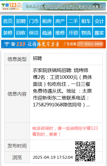 农家院铁锅炖招聘: 烧烤师傅2名:工资10000元(具体面谈)包吃包住,一日三餐免费待遇从优。