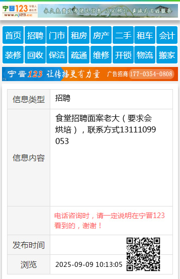 食堂招聘面案老大(要求会烘培),联系方式13111099053