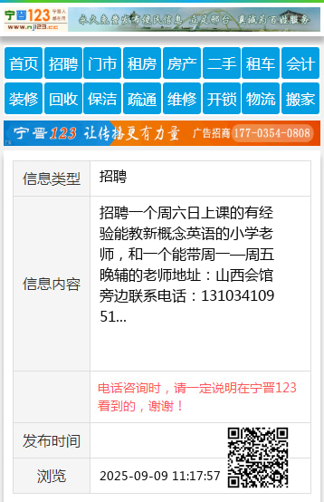 招聘一个周六日上课的有经验能教新概念英语的小学老师,和一个能带周一—周五晚辅的老师地址:山西会馆旁边联系电话:13103410951 【电话咨询时,请一定说明在太原生活网看到的,谢谢!】 |