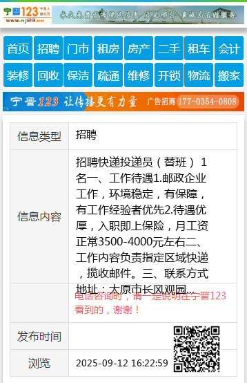 1.邮政企业工作,环境稳定,有保障,有工作经验者优先