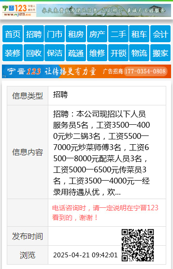 一经录用待遇从优,欢迎志同道合,吃苦耐劳的家人们加入我们大家庭,我们在这里等你。联系电话15934102331,地址太原小店康宁街 【电话咨询时,请一定说明在太原生活网看到的,谢谢!】 |