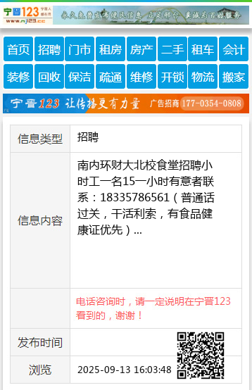 南内环财大北校食堂招聘小时工一名15一小时