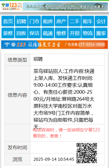 工作时间:9:00-14:00工作要求:认真细心、有责任心薪资:2000-2500元/月
