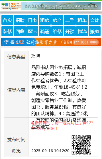 品雅书店因业务拓展,诚招店内导购数名 1:有图书工作经验者优先,无经验也可免费培训,年龄18-45岁! 2:薪酬面议 3:吃苦耐劳,能适应零售业工作制。热爱图书,服务意识强,有良好的团队精神。 4:普通话流利,有较强的学习能力及沟通应变能力。 5、工作地点:并州东街清风小居底商品雅书店在这里:有书有朋友、理想事业努力也会有 我们欢迎志同道合的小伙伴加入 ☎13834595680 13111050122 |