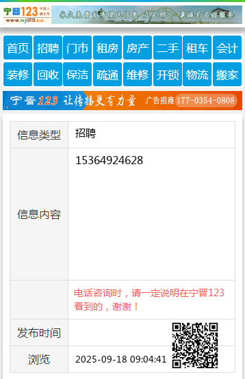 高新区长治路招聘一名保洁阿姨,正常班,工资2100,联系电话18636947612