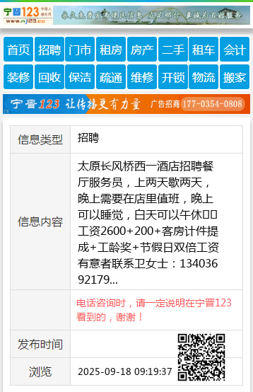 太原长风桥西一酒店招聘餐厅服务员,上两天歇两天,晚上需要在店里值班,晚上可以睡觉,白天可以午休☀☀