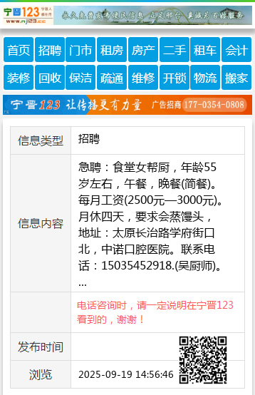 联系电话:15035452918.(吴厨师)。 【电话咨询时,请一定说明在太原生活网看到的,谢谢!】 |