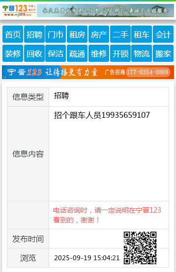 招个跟车人员19935659107