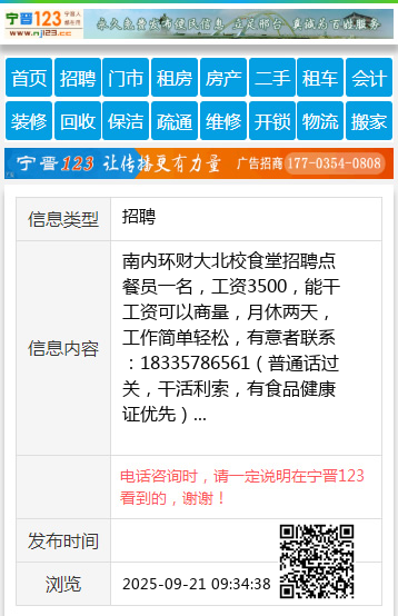 南内环财大北校食堂招聘点餐员一名,工资3500,能干工资可以商量,月休两天,工作简单轻松,有意者联系:18335786561(普通话过关,干活利索,有食品健康证优先) 【电话咨询时,请一定说明在太原生活网看到的,谢谢!】 |