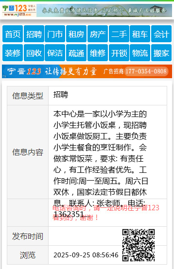 本中心是一家以小学为主的小学生托管小饭桌,现招聘小饭桌做饭厨工。主要负责小学生餐食的烹饪制作。会做家常饭菜,要求: 有责任心,有工作经验者优先。工作时间:周一至周五。周六日双休,国家法定节假日都休息。联系人: 张老师。电话: 13623514126 【电话咨询时,请一定说明在太原生活网看到的,谢谢!】 |