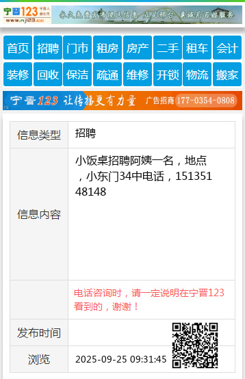 小饭桌招聘阿姨一名,地点,小东门34中电话,15135148148 【电话咨询时,请一定说明在太原生活网看到的,谢谢!】 |