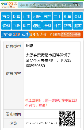 太原亲贤街超市招聘做饼子师父个人夫妻都行,电话15608950580