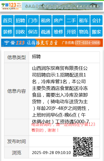 1.招聘配送员1名,冷库库管1名,本公司主要负责酒店食堂配送冷冻食品,需要出入冷库及装卸货物,(骑电动车送货为主)