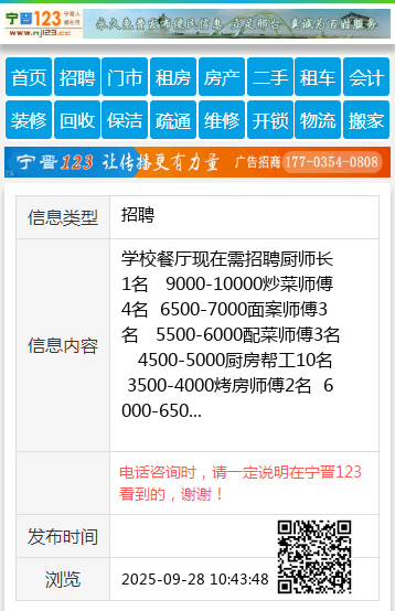 学校餐厅现在需招聘