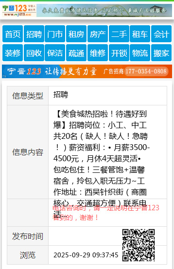 【美食城热招啦!待遇好到爆】招聘岗位:小工、中工共20名(缺人!缺人!急聘!)