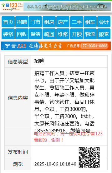 招聘工作人员;初高中托管中心。由于开学又增加大批学生。急招聘工作人员。