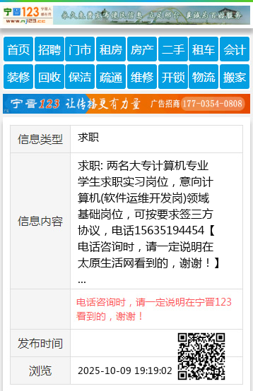 求职: 两名大专计算机专业学生求职实习岗位,意向计算机(软件运维开发岗)领域基础岗位,可按要求签三方协议,电话15635194454 【电话咨询时,请一定说明在太原生活网看到的,谢谢!】 |
