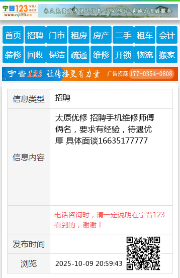 太原优修 招聘手机维修师傅俩名,要求有经验,待遇优厚 具体面谈16635177777