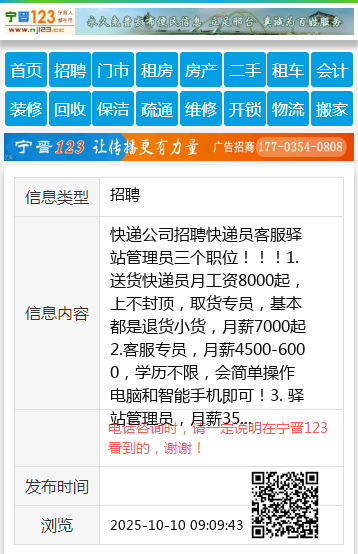 快递公司招聘快递员客服驿站管理员三个职位!!!