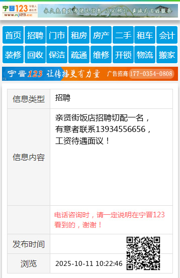 亲贤街饭店招聘切配一名,有意者联系13934556656,工资待遇面议! 【电话咨询时,请一定说明在太原生活网看到的,谢谢!】 |
