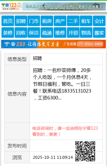 招聘:一名炒菜师傅,20多个人吃饭,一个月休息4天,节假日福利,管吃。一日三餐!联系电话18335131023,工资6300 【电话咨询时,请一定说明在太原生活网看到的,谢谢!】 |