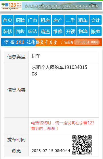 求租个人网约车19103401508