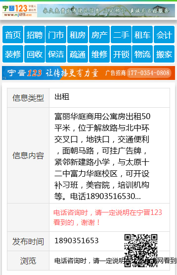 富丽华庭商用公寓房出租50平米,位于解放路与北中环交叉口,地铁口,交通便利,面朝马路,可挂广告牌,紧邻新建路小学,与太原十二中富力华庭校区,可开设补习班,美容院,培训机构等。电话18903516530 【电话咨询时,请一定说明在太原生活网看到的,谢谢!】 |