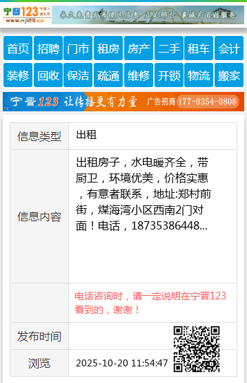 出租房子,水电暖齐全,带厨卫,环境优美,价格实惠,有意者联系,地址:郑村前街,煤海湾小区西南2门对面!电话,18735386448 【电话咨询时,请一定说明在太原生活网看到的,谢谢!】 |