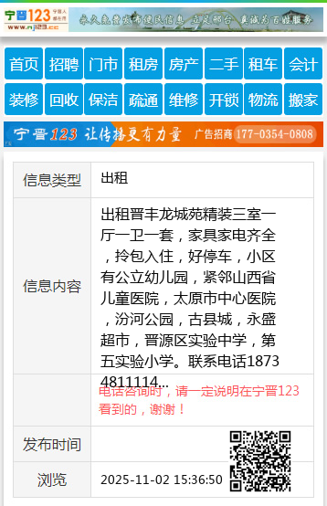 出租晋丰龙城苑精装三室一厅一卫一套,家具家电齐全,拎包入住,好停车,小区有公立幼儿园,紧邻山西省儿童医院,太原市中心医院,汾河公园,古县城,永盛超市,晋源区实验中学,第五实验小学。联系电话18734811114 【电话咨询时,请一定说明在太原生活网看到的,谢谢!】 |