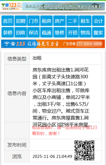 1.涧河花园(距离丈子头快速路300米,丈子头高速口1公里)小区车库出租出售,可做库房以及小商铺,单间22平米,出租3千/年,出售6.5万/间,物业过户。