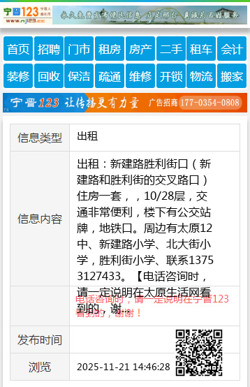 出租:新建路胜利街口(新建路和胜利街的交叉路口)住房一套,,10/28层,交通非常便利,楼下有公交站牌,地铁口。周边有太原12中、新建路小学、北大街小学,胜利街小学、联系13753127433。 【电话咨询时,请一定说明在太原生活网看到的,谢谢!】 |