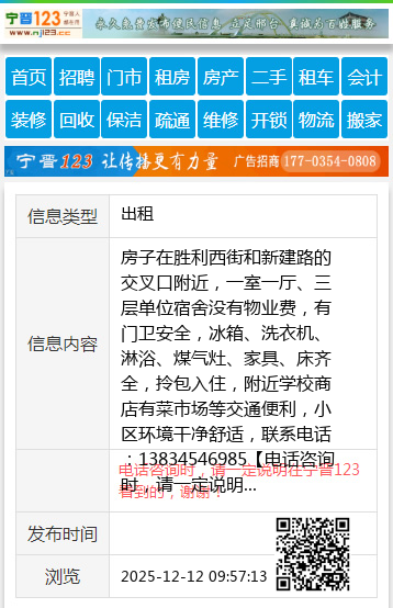 房子在胜利西街和新建路的交叉口附近,一室一厅、三层单位宿舍没有物业费,有门卫安全,冰箱、洗衣机、淋浴、煤气灶、家具、床齐全,拎包入住,附近学校商店有菜市场等交通便利,小区环境干净舒适,联系电话:13834546985 【电话咨询时,请一定说明在太原生活网看到的,谢谢!】 |