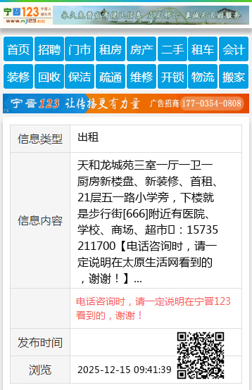 天和龙城苑三室一厅一卫一厨房新楼盘、新装修、首租、21层五一路小学旁,下楼就是步行街[666]附近有医院、学校、商场、超市☎:15735211700 【电话咨询时,请一定说明在太原生活网看到的,谢谢!】 |