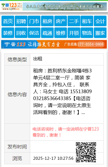 租房:胜利桥东金刚堰4栋3单元4层二室一厅,简装 家具齐全,拎包入住,