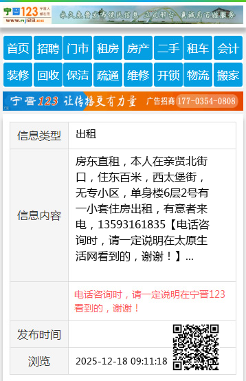 房东直租,本人在亲贤北街口,住东百米,西太堡街,无专小区,单身楼6层2号有一小套住房出租,有意者来电,13593161835 【电话咨询时,请一定说明在太原生活网看到的,谢谢!】 |