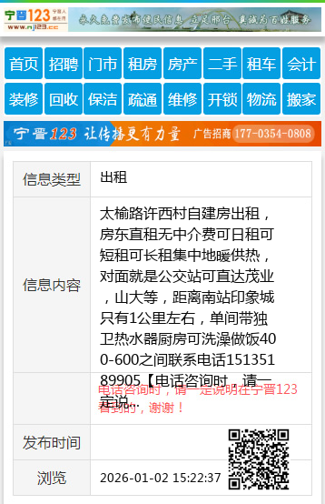 太榆路许西村自建房出租,房东直租无中介费可日租可短租可长租集中地暖供热,对面就是公交站可直达茂业,山大等,距离南站印象城只有1公里左右,