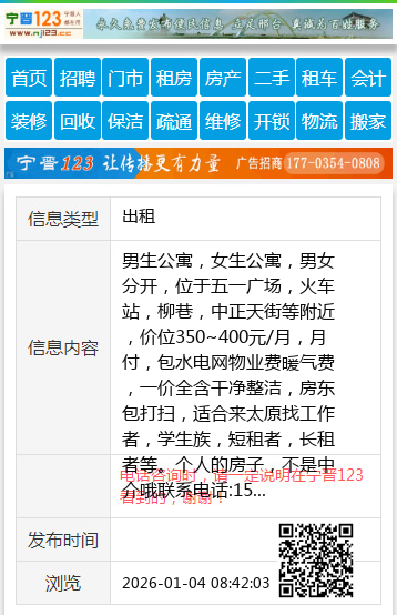 注:非单间,属于合租房,按1个人1个床位收费 【电话咨询时,请一定说明在太原生活网看到的,谢谢!】 |