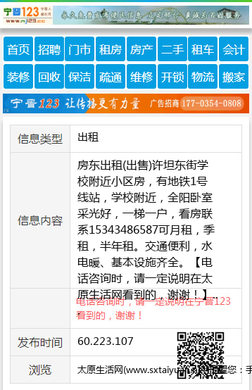 房东出租(出售)许坦东街学校附近小区房,有地铁1号线站,学校附近,全阳卧室采光好,一梯一户,看房联系15343486587可月租,季租,半年租。交通便利,水电暖、基本设施齐全。 【电话咨询时,请一定说明在太原生活网看到的,谢谢!】 |