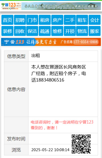 本人想在晋源区长风商务区广经路,附近租个房子,电话18834806516