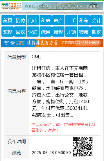 出租住房,本人在下元商圈龙腾小区有住房一套出租,一层,二室一厅一厨一卫纯朝南,水电暖家具家电齐,拎包入住,出行公交,地铁方便,购物便利,月租1400元,年付可优惠15003414142陈女士,可出售 【电话咨询时,请一定说明在太原生活网看到的,谢谢!】 |