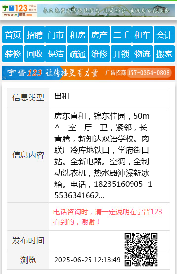 房东直租,锦东佳园,50m^一室一厅一卫,紧邻,长青腾,新知达双语学校。肉联厂冷库地铁口,学府街口站。