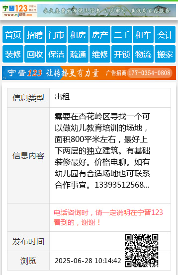 需要在杏花岭区寻找一个可以做幼儿教育培训的场地,面积800平米左右,最好上下两层的独立建筑。有基础装修最好。价格电聊。