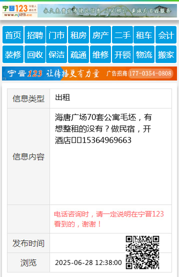 海唐广场70套公寓毛坯,有想整租的没有?做民宿,开酒店☎️15364969663 【电话咨询时,请一定说明在太原生活网看到的,谢谢!】 |