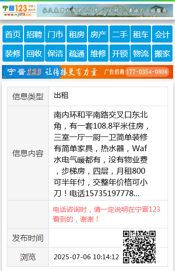 南内环和平南路交叉口东北角,有一套108.8平米住房,三室一厅一厨一卫简单装修