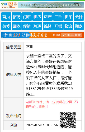 求租一室或二室的房子,交通方便的,最好在长风街附近或公园时代城附近的,能拎包入住的最好精装,一个爱干净的女孩入住,最好能月付的