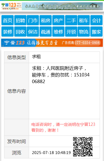 求租:人民医院附近房子,能停车,贵的勿扰:15103406882