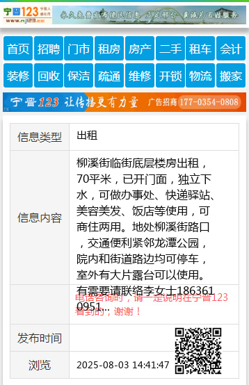 柳溪街临街底层楼房出租,70平米,已开门面,独立下水,可做办事处、快递驿站、美容美发、饭店等使用,可商住两用。
